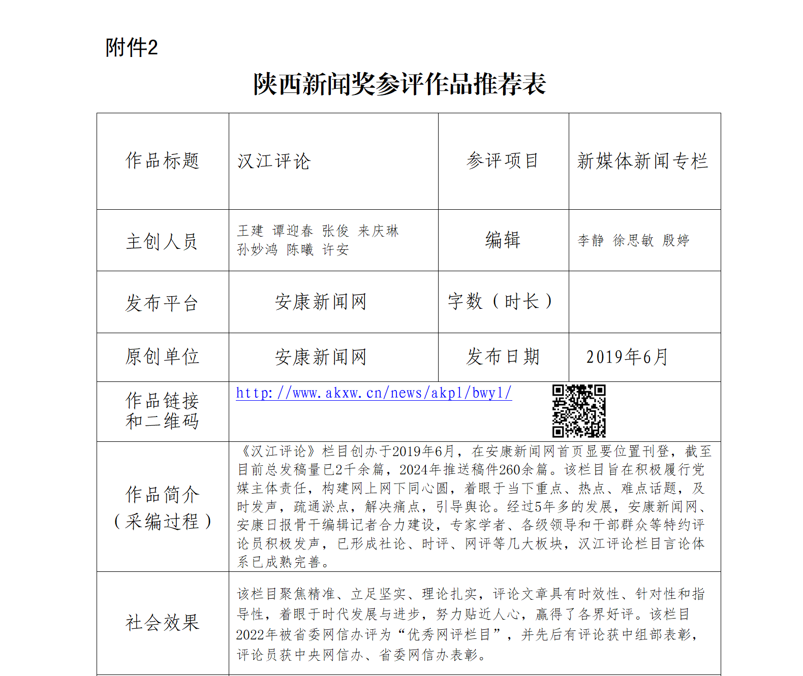 經(jīng)過社黨委研究決定,擬推薦以下2件新聞作品參評“2024年度陜西新聞獎融合報道、應(yīng)用創(chuàng)新和新媒體新聞專欄”。公示時間從2025年1月6日至2025年1月10日,公示期5個工作日。如有不同意見,請向安康日報社機關(guān)紀委、新聞管理部反映。zRn安康新聞網(wǎng)