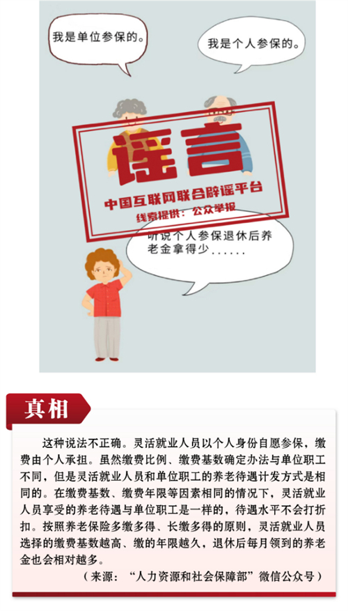 謠言4:以個人身份參保不如單位職工參保劃算?