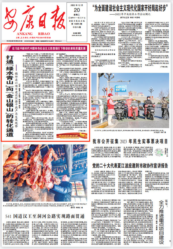 (2022年12月20日安康日?qǐng)?bào)01版“打通“綠水青山”向“金山銀山”的轉(zhuǎn)化通道”)
