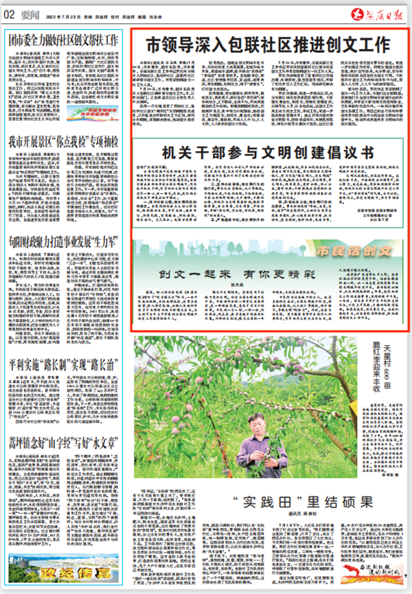 (2022年7月23日安康日?qǐng)?bào)02版“市領(lǐng)導(dǎo)深入包聯(lián)社區(qū)推進(jìn)創(chuàng)文工作”)