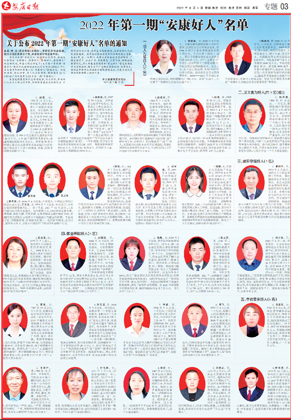 (2022年8月1日安康日?qǐng)?bào)03版“2022年第一期‘安康好人’名單”)