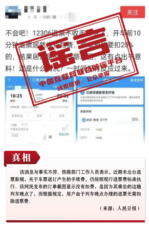 謠言3:火車票退票不扣手續(xù)費(fèi)了?