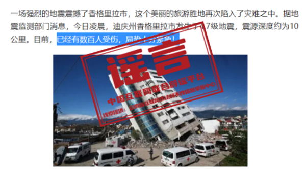 謠言:云南迪慶香格里拉市4.7級地震中,有數(shù)百人受傷?