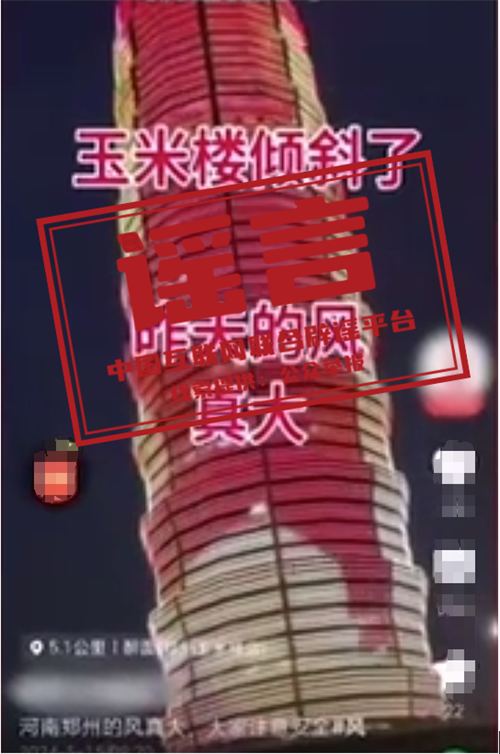 謠言:鄭州地標建筑“大玉米”樓被大風刮歪?