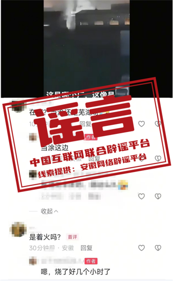 真相:近日,一網(wǎng)民在短視頻平臺發(fā)布視頻配文“這是哪個廠,好像是著火啦”,并在評論區(qū)稱“工廠在當涂、燒了好幾個小時”等。經(jīng)安徽省馬鞍山市當涂經(jīng)濟開發(fā)區(qū)應急管理局和消防救援中心核實,當涂經(jīng)濟開發(fā)區(qū)境內(nèi)沒有發(fā)生火情火災,該視頻為虛假信息。(來源:“安徽省互聯(lián)網(wǎng)違法和不良信息舉報”微信公眾號)