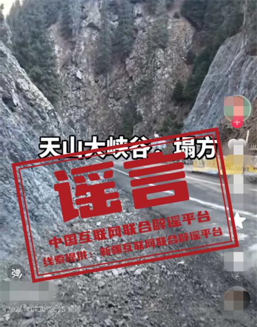 真相:近日,有網(wǎng)民在網(wǎng)絡(luò)平臺(tái)發(fā)布視頻并配文稱“天山大峽谷塌方”,引發(fā)關(guān)注。經(jīng)烏魯木齊市南山景區(qū)管理委員會(huì)核實(shí),該情況不屬實(shí),相關(guān)信息系謠言。網(wǎng)傳圖片實(shí)為2025年10月24日,烏魯木齊中佳勘察設(shè)計(jì)有限公司在天山大峽谷景區(qū)進(jìn)入山溝1.3公里處進(jìn)行山體排險(xiǎn)作業(yè)時(shí)的畫面。(來(lái)源:“新疆網(wǎng)絡(luò)辟謠”微信公眾號(hào))