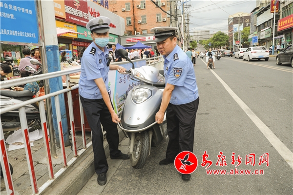 7月27日,江北交警、志愿者服務(wù)隊(duì)對(duì)中渡街交通和市容進(jìn)行治理。(郭曉康)