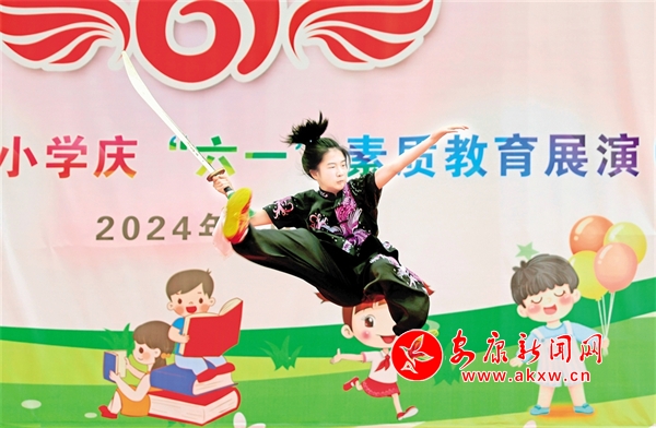 平利縣各小學(xué)、幼兒園開展多種活動(dòng),喜迎“六一”國(guó)際兒童節(jié)。圖為平利縣城關(guān)小學(xué)的學(xué)生在表演武術(shù)。沈奕君 攝