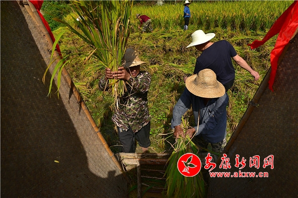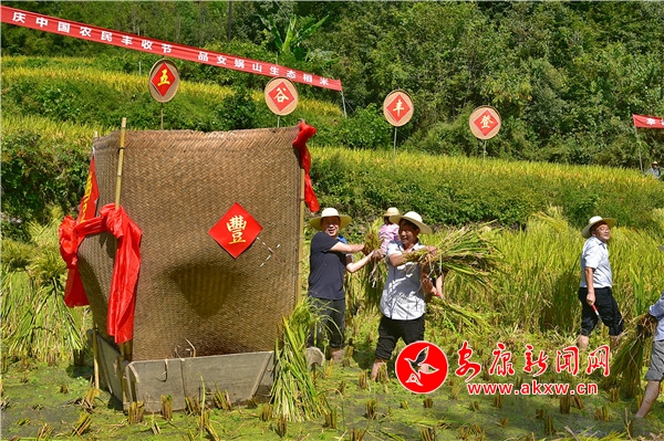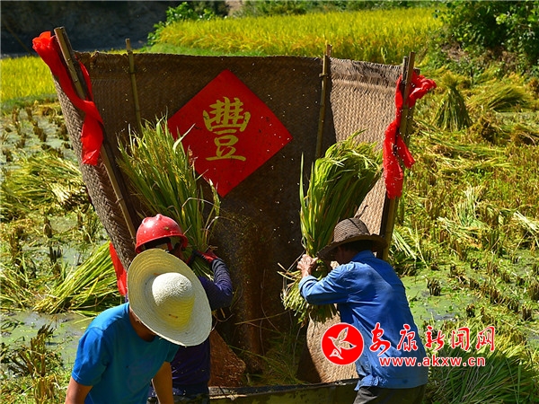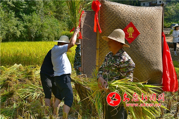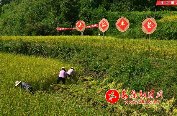 秋日,平利鄉(xiāng)村田園間梯田層層,稻浪滾滾,飽滿(mǎn)的谷穗壓彎了稻桿,放眼望去,遍野鋪金,空氣中也彌漫著淡淡的稻香。在西河鎮(zhèn)女?huà)z山村三里溝原生態(tài)水稻田里,人們按照傳統(tǒng)的習(xí)俗和方式收割水稻,數(shù)十位村民手持鐮刀一字排開(kāi),迅速揮舞著手中的鐮刀,將金黃的稻穗割下并整齊的堆放。打谷人則分為兩組,兩人一組,交叉替換的將手中的稻秧在拌桶里反復(fù)甩打脫粒,拌谷聲“嘭呲嘭呲”有節(jié)奏地作響,聲勢(shì)頗為壯觀。與此同時(shí),廣佛鎮(zhèn)松河村李家坡的農(nóng)家小院已堆滿(mǎn)收回來(lái)的苞谷,郭老漢正在將苞谷殼撕開(kāi),編成串掛在屋檐下的竹竿上晾曬,金黃的苞谷棒子整齊排列,儼然一幅鄉(xiāng)村小院秋實(shí)圖。