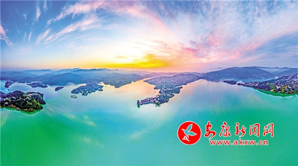 瀛湖是中國獨(dú)特的山水風(fēng)光之湖。秦嶺與巴山夾峙護(hù)佑,造就了如畫的湖,形成了夢幻的景。四時風(fēng)光,不遜西湖,不輸洱海,亦可自比千島湖。瀛湖冬景中蘊(yùn)含著春華與秋色,初冬游覽瀛湖,遠(yuǎn)能看青山不墨千秋畫,近可聽流水無弦萬古琴。山起西北下東南,江自天邊出河谷,形成了地形上的小氣候,冬日里應(yīng)是天寒地凍,但瀛湖一地,冬雨過后,山谷風(fēng)來,云興霞蔚,日影扶疏。看山,群山層林盡染,如調(diào)色板傾覆其上,一坡樹枝隨風(fēng)變,斑斕色彩比花美,游人盛贊“此景只應(yīng)天上有,人間能得幾回見”。觀水,湖面寬闊清凈,風(fēng)起波瀾,水光瀲滟,舟行碧波,人在畫中。晨起湖面輕霧籠罩,是海上瀛洲的景象;正午云光投射湖面,天空之鏡如夢幻般瑰麗;傍晚行至水窮處,坐看云起,就有了迷人的霞光,或金黃或橘紅,給湖面一層層染色,與山林應(yīng)和,便是紅黃翠綠清且淺,萬般顏色不爭春了。