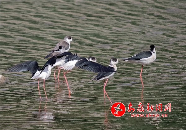 隨著漢陰縣生態(tài)環(huán)境的改善,越來(lái)越多的候鳥(niǎo)駐足該縣覓食、棲息。近日,在漢陰縣人工湖內(nèi),一群黑翅長(zhǎng)腳鷸時(shí)而空中飛翔,時(shí)而淺灘處嬉戲覓食,受到了鳥(niǎo)類攝影愛(ài)好者的關(guān)注。黑翅長(zhǎng)腳鷸,體羽由黑白兩色構(gòu)成,其紅色的腳細(xì)而長(zhǎng),顏值頗高。(圖文/尹正軍 黃智發(fā) 賀珍珍) CuZ安康新聞網(wǎng)
