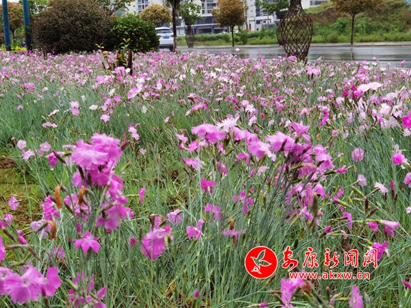 最美人間四月天。4月22日,陰雨綿綿,漢陰縣花月灣迎賓公園步道邊月季花、蝴蝶花、石竹子花綻放,在蒙蒙細(xì)雨的滋潤下,格外妖嬈,市民漫步其中,悠然自得。(通訊員 林愛銘)HLW安康新聞網(wǎng)