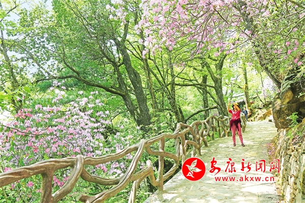 ⑤ 石泉縣云霧山景區(qū)內(nèi)約2000余株野生高山杜鵑次第盛開(kāi),吸引游客賞花拍照。譚文昌 攝