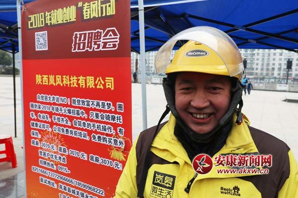 2月2日,胡延軍在嵐皋縣就業(yè)創(chuàng)業(yè)“春風(fēng)行動(dòng)”招聘會(huì)現(xiàn)場(chǎng)應(yīng)聘合適的工作崗位。張昊 攝 換上工作服,胡延軍笑得合不攏嘴。張昊 攝安康新聞網(wǎng)訊(通訊員 張昊)2月2……