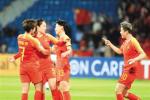 中國隊(duì)球員唐佳麗(左二)進(jìn)球后和隊(duì)友慶祝。