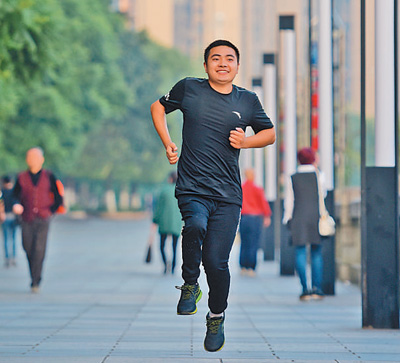 熊軍奔跑在重慶市萬州區(qū)北濱路上。 冉孟軍攝