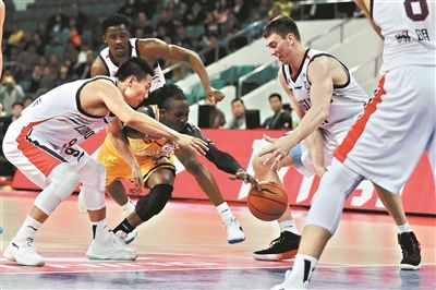 廣州隊(duì)與對手激烈拼搶。 廣州日報全媒體記者 廖藝 攝