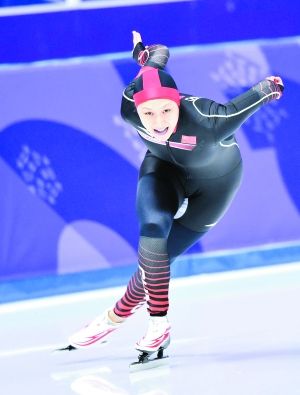 張虹在速度滑冰女子1000米比賽中。本報特派記者 白宇攝