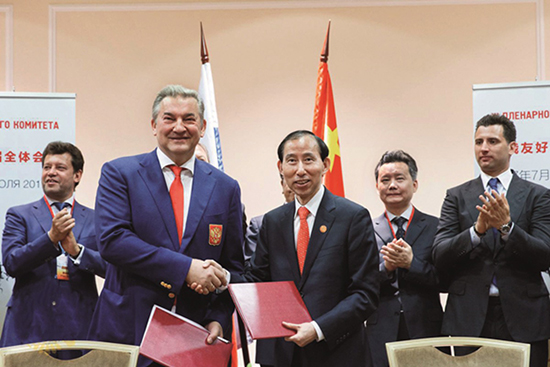 “絲路杯”超級冰球聯(lián)賽合作協(xié)議簽署現(xiàn)場