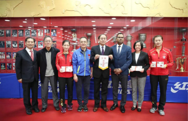 費(fèi)薩爾在領(lǐng)隊(duì)黃飚和丁寧、劉詩(shī)雯的陪同下參觀了國(guó)乒榮譽(yù)墻,交流中他告訴兩位國(guó)乒隊(duì)員說(shuō),馬爾代夫第一支出訪(fǎng)國(guó)外的運(yùn)動(dòng)隊(duì)就是乒乓球隊(duì),1973年曾來(lái)到過(guò)中國(guó),和中國(guó)乒乓球淵源很深。