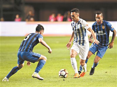 上半場比賽,江蘇蘇寧直接落入防守,廣州富力控制著比賽節(jié)奏,但得勢不得分。富力在前場的3個(gè)主要攻擊點(diǎn),扎哈維、肖智和雷納迪尼奧,幾乎被對手完全隔離,3人之間難以打出配合,多數(shù)時(shí)候在密集防守下落入單打獨(dú)斗或孤立無援的局面。蘇寧主帥奧拉羅尤也在賽后表示,球隊(duì)在備戰(zhàn)時(shí),以富力進(jìn)攻端的核心球員為目標(biāo),有針對性地進(jìn)行了防守訓(xùn)練。