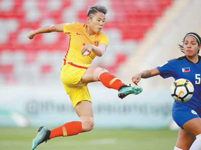 首戰(zhàn)以4∶0擊敗小組最強(qiáng)大的對手泰國女足,次輪以3∶0戰(zhàn)勝首輪獲勝的菲律賓女足,“鏗鏘玫瑰”的兩場比賽拒絕了任何冷門的發(fā)生。與對陣泰國女足時(shí)上半場顆粒無收相比,中國女足在北京時(shí)間4月9日晚對陣菲律賓女足的第二輪小組賽中早早取得領(lǐng)先,奠定勝局。兩場比賽中,邊鋒宋端和前鋒李影分別梅開二度,狀態(tài)上佳!拔覀兿胱C明中國女足依然屬于亞洲頂級球隊(duì),我們來這里是為了那塊分量最重的獎(jiǎng)牌!瘪R君的話與她對陣菲律賓女足時(shí)的破門同樣霸氣。