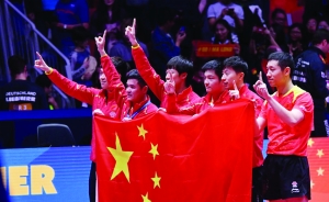 北京時間5月6日晚,2018年團(tuán)體世乒賽在瑞典哈爾姆斯塔德落下帷幕。在壓軸上演的男團(tuán)決賽中,由馬龍、樊振東和許昕出戰(zhàn)的中國男隊(duì)以3:0橫掃由波爾、菲魯斯和弗朗西斯卡出戰(zhàn)的德國隊(duì),成就團(tuán)體世乒賽史上首次九連冠。此前中國女乒曾經(jīng)兩次在沖擊九連冠時功虧一簣,這一次魔咒終于被中國男乒打破。