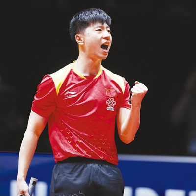 5月6日,中國隊選手馬龍在比賽中慶祝。KiS安康新聞網
