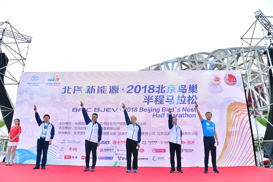 賽前,來自國家體育總局田徑運動管理中心、北京市國有資產經營有限責任公司、北京奧林匹克公園管理委員會、北汽新能源股份有限公司、亞瑟士(中國)商貿有限公司、北京銀行、北科建集團以及陽光保險集團等單位的領導嘉賓共同出席了發(fā)槍儀式。