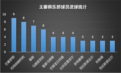 而俱樂部方面,巴塞羅那俱樂部所屬球員打入了9個(gè)進(jìn)球,是世界杯進(jìn)球數(shù)最多的俱樂部,排名第2-4位的俱樂部是托特納姆熱刺(8個(gè))、曼聯(lián)(7個(gè))、馬德里競技(6個(gè))。而巴塞羅那與眾不同的地方在于,其他幾個(gè)俱樂部是靠著射手榜前列的球員撐起總進(jìn)球數(shù),而巴薩則是由6名球員完成的9粒進(jìn)球。