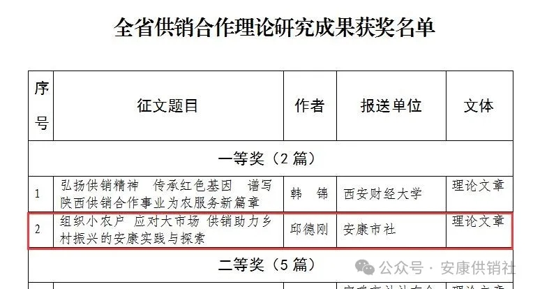 按:本文系安康市供銷合作社黨組書記、理事會主任邱德剛署名理論文章,立足供銷助力鄉(xiāng)村振興的安康實踐與探索,深入闡述了“組織小農戶應對大市場”的內在邏輯,把群眾“組織起來”投身經濟合作的實踐方法,在助力鄉(xiāng)村振興、推進共同富裕實踐中探索出一條可復制可推廣的典型經驗,其理論內涵、實踐邏輯為在推進鄉(xiāng)村振興中更好發(fā)揮供銷社的獨特優(yōu)勢和重要作用提供了有益參考,具有較強的指導意義。該文在中華全國供銷總社和陜西省供銷總社“薪火相傳七十載,砥礪奮進新時代”主題征文中獲評“全省供銷合作理論研究成果一等獎”。