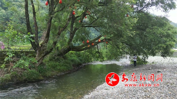 菜園緊挨著一條河。河邊,幾棵高大的麻柳樹成了幾個天然的遮陽棚。河灘上則搭建了涼棚,供更多游客休憩。