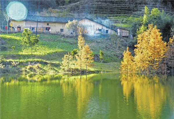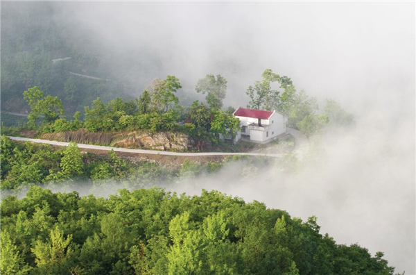 在水中,一條油潤潤的小路,融匯了大地的物語,春雨的澆注,還有輕輕觸碰就會變幻的神秘。道路的兩邊,是造型夸張要滴出翠來的植物,阻擋了行人的腳步,牽絆了路人的衣服,會給那些衣服沾染上艷麗的花粉,在深夜里都會散發(fā)出一股醉人的清氣,仿佛有什么該想而未想,心里蘊(yùn)滿了不能為人道皎潔的白月光。沿著那條路,就是在水中宛若樓臺亭閣一般的房屋,黑瓦房、白墻壁,杏花、桃花、茉莉花爭相簇?fù),房子便如置身其中的嬰兒了。還有小奶狗在屋前悠閑地打盹,太陽直射下來,貓也走來湊湊熱鬧,貓的眼睛碧藍(lán)澄澈,仿佛天使之瞳,總是帶著先知或者驚異審視的表情……而與此相對的,就是炊煙了,唯有炊煙將我們拉回世俗庸常之中,飯菜的香氣,去年果木熏的臘肉,農(nóng)家自己釀的一碗包谷燒,啊,真想喝點(diǎn)小酒,酒的美妙不在于入口的辛辣,而在于微醺之時,那種難以控制的快樂!古來圣賢皆寂寞,唯有飲者留其名,明天的事,明天再說吧!