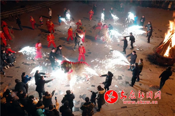 石泉縣池河明星村滄海桑田旅游景區(qū)開園迎客,豐富多彩的傳統(tǒng)民俗活動讓市民和游客樂享其中,精彩紛呈的節(jié)目鬧紅正月里,濃濃的鄉(xiāng)情、濃濃的年味兒環(huán)繞在明星村里。上至耄耋老人,下至總角幼童,演出的群眾演得盡興,觀看的村民看得開心,既為鄉(xiāng)村春節(jié)增添了快樂和喜慶,也展示了新農(nóng)村、新農(nóng)民的新風貌。最刺激的還屬石泉火獅子,作為陜西非物質(zhì)文化遺產(chǎn)的火獅子在石泉人心中不僅代表著年味,更象征喜氣祥和,在熱烈的鑼鼓聲中,獅子搖頭擺尾舞動,煙花爆竹交融,騰挪跳躍,真可謂“金花四射神獅舞,電閃雷鳴映長空”。