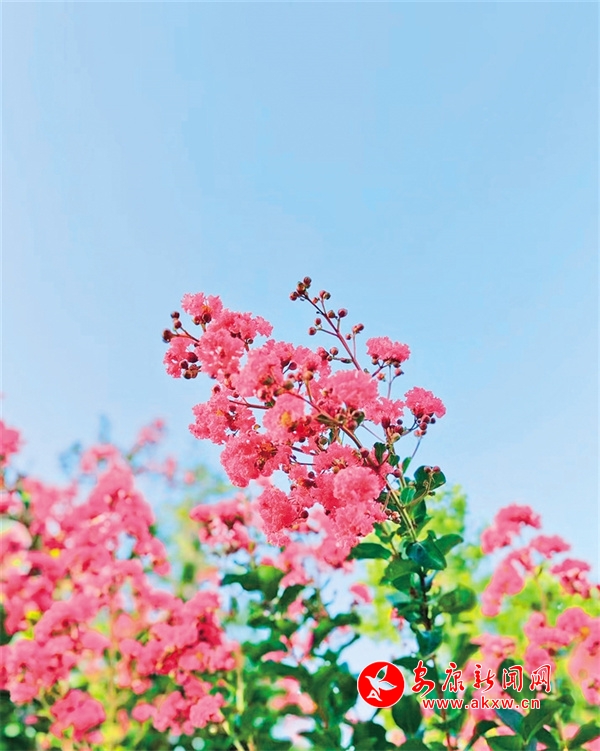 “獨占芳菲當(dāng)夏景,不將顏色托春風(fēng)!碑(dāng)上百株紫薇花在鳳凰山里絢爛枝頭時,我與它們在大南溝相遇!