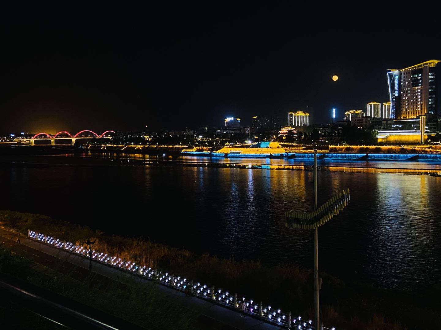 皓月當(dāng)空,繁星點(diǎn)點(diǎn),孫女鬧著讓我?guī)h江邊乘坐輪船游玩,我執(zhí)拗不過她,便帶她來到漢江一橋下面,老遠(yuǎn)就聽到輪船售票員拉客的聲音:“十元一坐,讓你暢游漢……