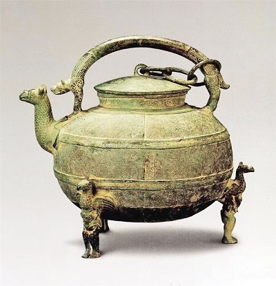 東漢許慎在《說文解字》里有言:“盉,調味也。從皿,禾聲。” 王國維在《說盉》中言:“余謂盉者,蓋和水于酒之器,所以節(jié)酒之厚薄也。”可見盉是古代酒器,是用來調和米酒,加水來沖兌酒味濃淡的。從考古發(fā)現(xiàn)看,多分布于山西、陜西、河南、江蘇、安徽等地,尤以江淮地區(qū)分布最多。西周中期以后,盉常與盤共出,說明盉的功能有所轉變,從酒器變?yōu)樗,不論作為酒器還是水器,“盉”與人們的日常生活總是密切相關,它是“茶壺”的鼻祖,現(xiàn)代用的茶壺即是由它發(fā)展而來。