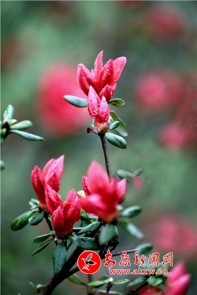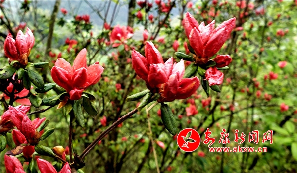 變焦鏡頭下,水珠盈盈欲滴的映山紅,張開每一寸毛孔,大口大口地呼吸。吐納之間,是風里春天的氣息,是雨里植物的拔節(jié)。不留神闖入這勝境的人們,便醉倒于負氧離子的懷抱。琳瑯風雨過后,漫山遍野都沾染上水的晶瑩,大地的飽和度被調(diào)至清明,每一片樹葉都在私語,每一棵枝條都閃著盈光。